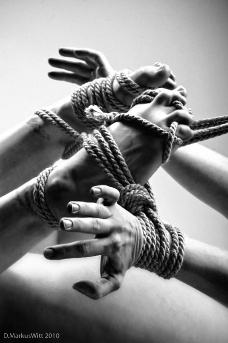 He walked behind her, her legs were splayed in the hogtie, exposing, inviting. He tickled the flogger tendrils against her glistening sex.